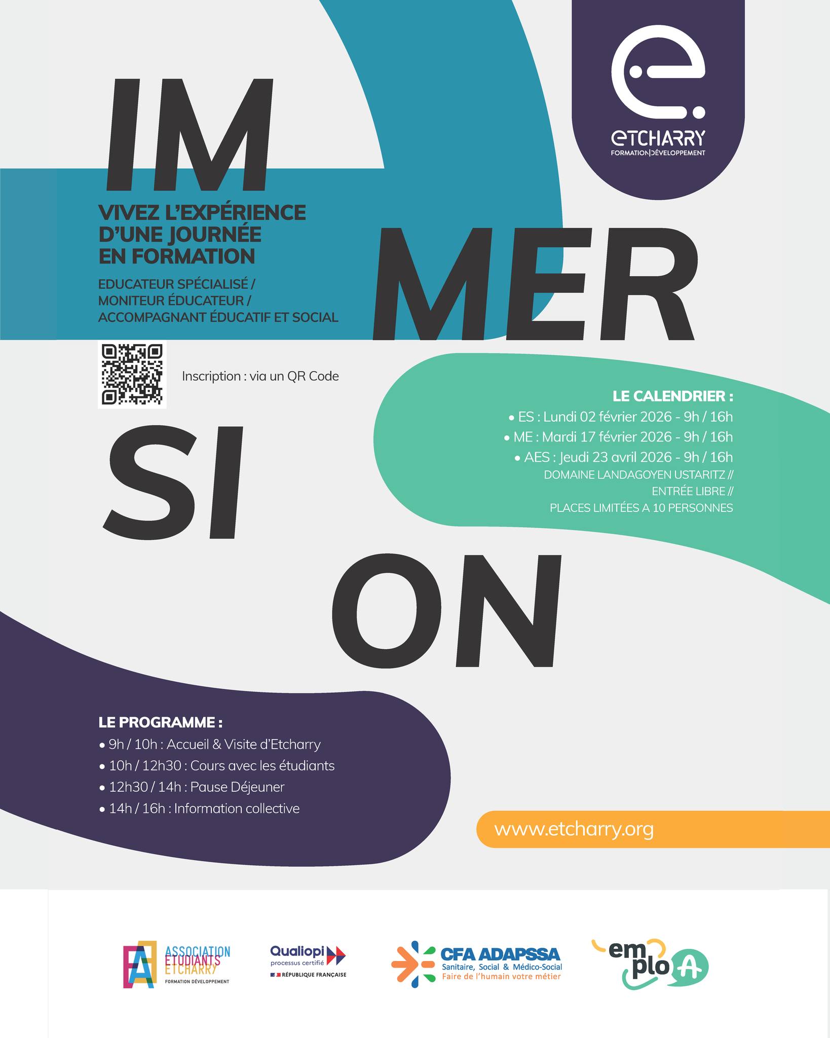 Trois immersions vous sont proposées pour vivre pleinement l’expérience, rencontrer nos formateurs, professionnels et étudiants, et découvrir notre centre de formation à Ustaritz.