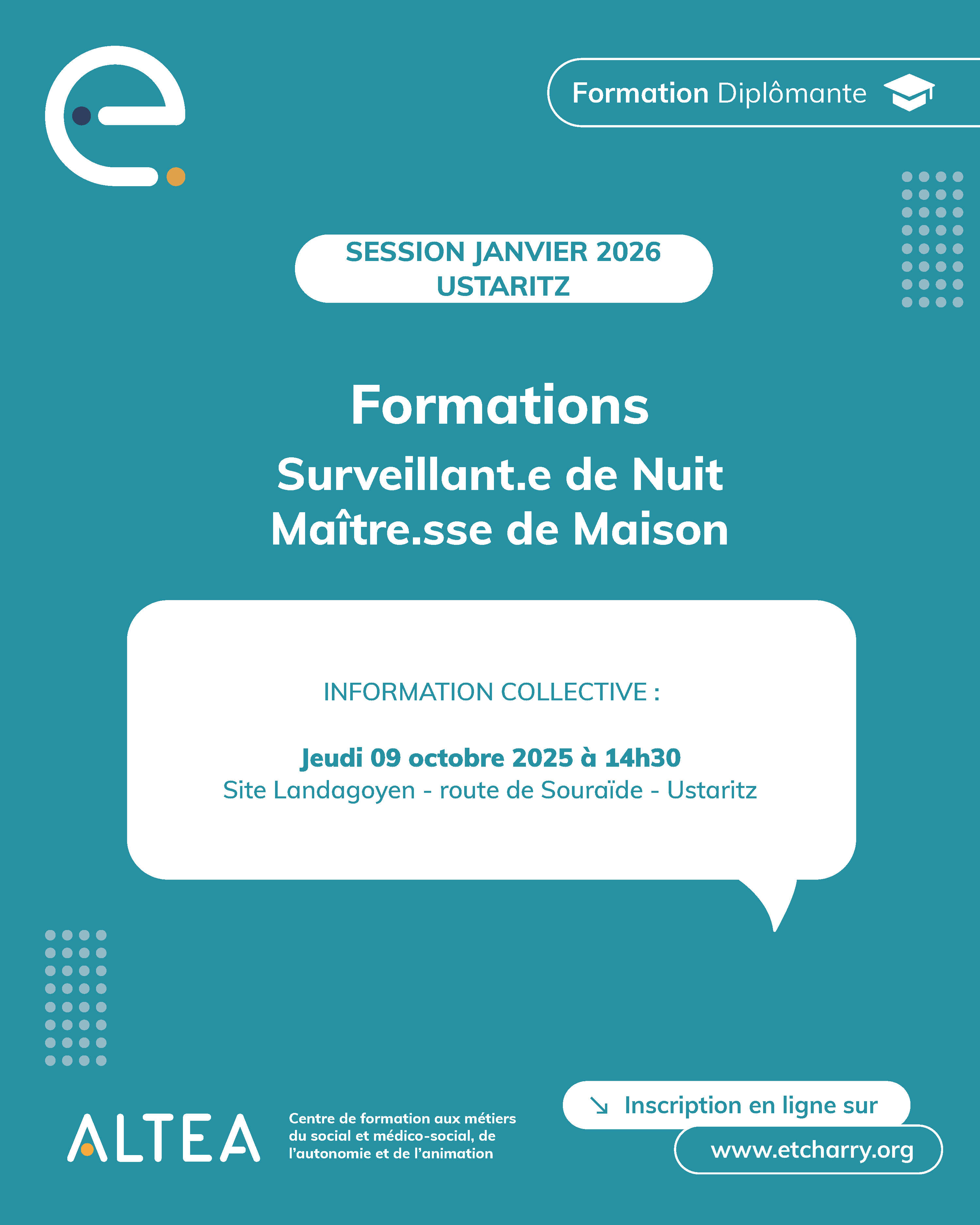 Une nouvelle session de formation Maître.sse de maison & Surveillant.e de nuit débutera en janvier 2026, sur 10 mois à Ustaritz.