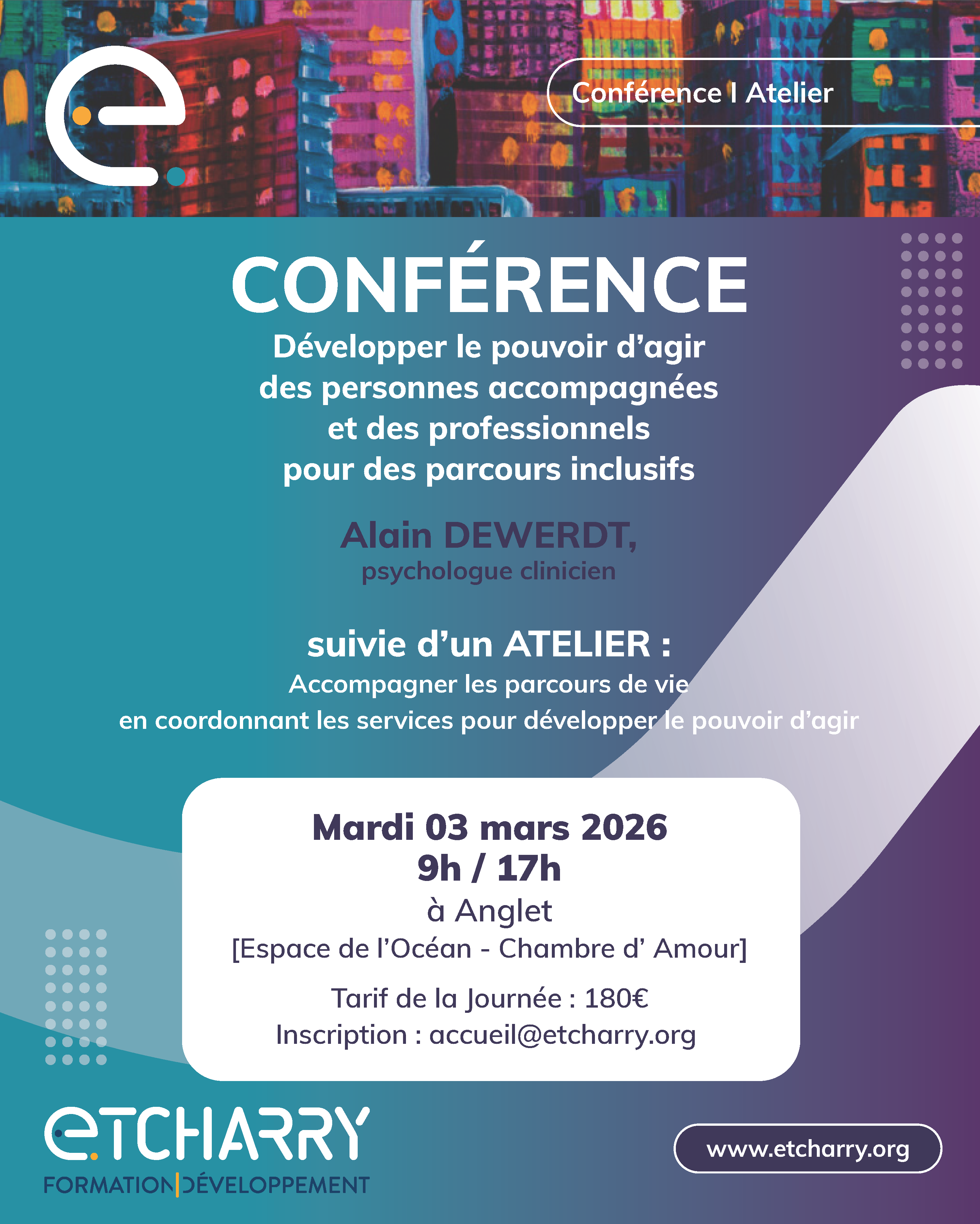 Nos conférences, webinaires et ciné-débats sont autant d’évènements aptes à prolonger et enrichir les compétences professionnelles. Sur la base d’invitations proposées à des auteurs, penseurs ou encore réalisateurs, ces épisodes multidisciplinaires et interactifs sont toujours l’occasion de nouvelles connaissances à acquérir et donc, de nouvelles pratiques professionnelles à venir.
